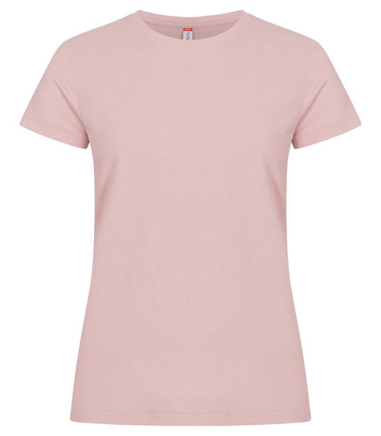Basic t-shirt i en smalere passform, bånd i nakke, elastan i halsribb og forsterkede sømmer på skuldre. Rundstrikket herremodell og sidesømmer på damemodell.
