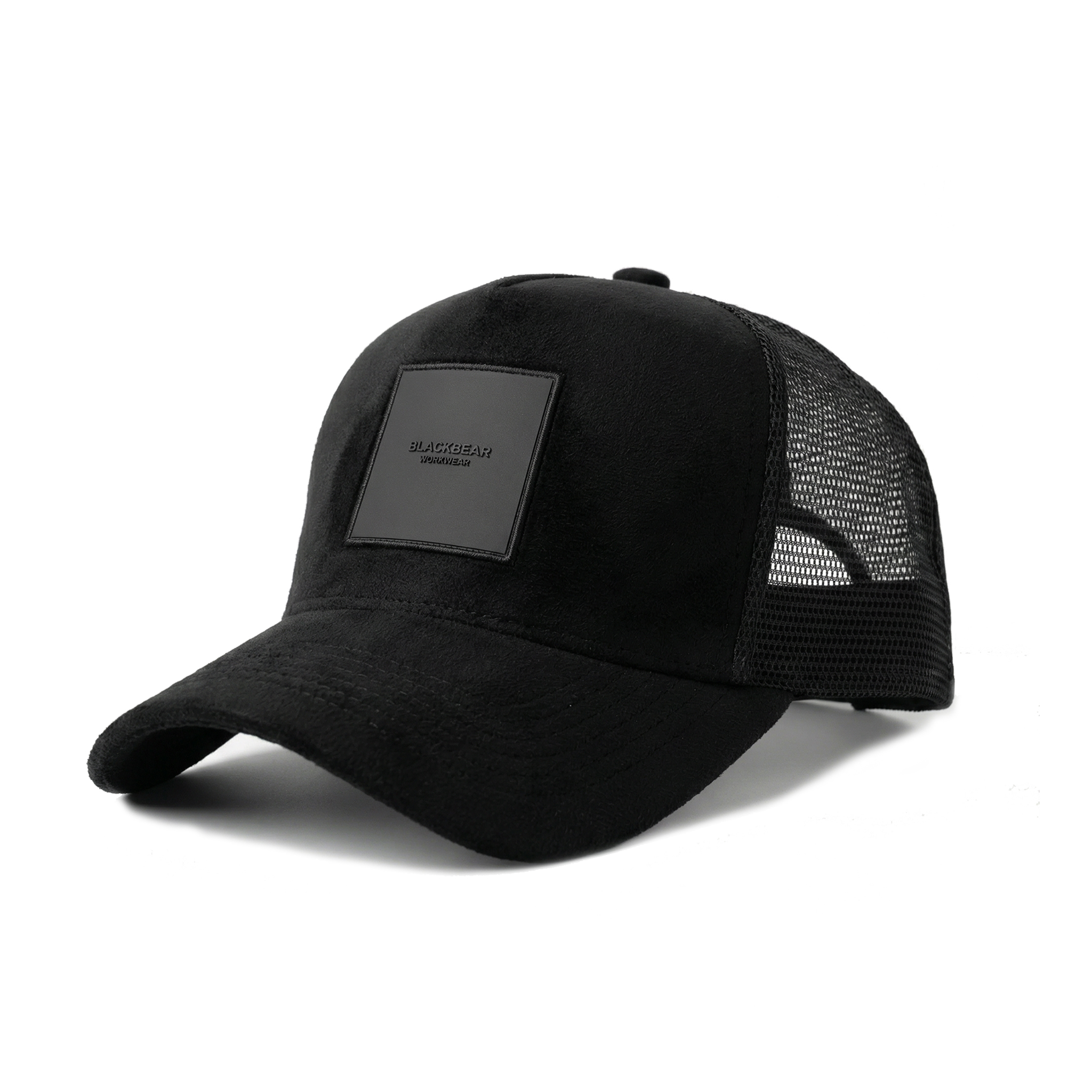 Caps i børstet velur med forbuet brem. Størrelsen kan justeres bak.