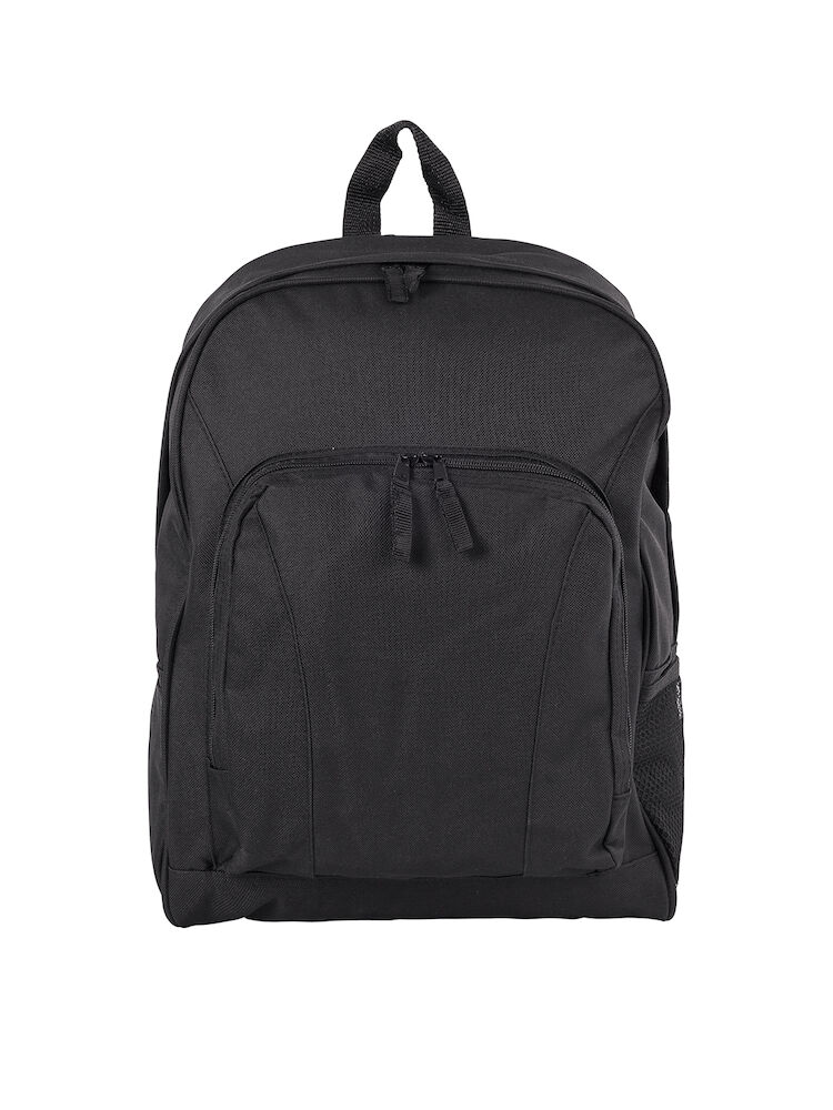 "Ryggsekk med et stort hovedrom. Frontlomme med mobillomme og holder til penn. To sidelommer i mesh. " Stort hovedrom " Frontlomme med mobillomme og holder til penn " To sidelommer " Enkle bærereimer"