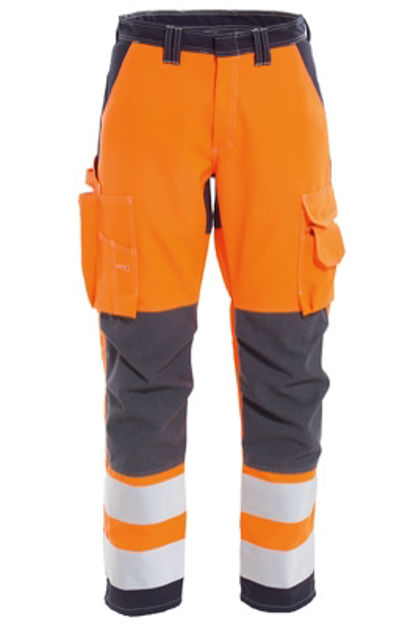Stikklommer, baklommer med klaffer. Doble lårlommer med mobil- og tommestokklomme. Formsydde kne, forsterket med HTFR Dobby med innvendige justerbare kneputelommer. Som følge av at buksene er fôret kan de oppleves som noe mindre i størrelsen.