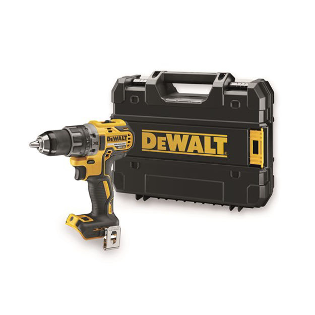 Kompakt og sterk børsteløs 18V DEWALT drill. Ergonomisk design og gummiert grep for lang tids bruk og god brukerkomfort. Maskinen har to hastigheter, metallgir og 15 posisjoners moment. Den har et maks dreiemoment på 70 Nm. Belteklips, magnetisk bitsholder, og 3-trinns LED-lys er integrert på enheten. LED-lyset er strategisk plassert på foten for et godt arbeidslys gjennom jobben. Velegnet for montering- og installasjonsoppgaver både i tre og metall samt skrutrekking. Maskinen leveres i koffert uten batteri og lader.