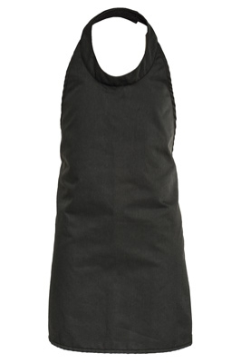 Kraven er justerbar for å beskytte halsen og for å hindre at sveiseperler trenger seg innenfor. Knytes i midjen. Lengde fra halsen og ned er 74 cm.