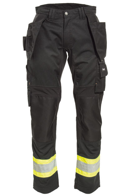 Forsterket gylf med stretch i skrittet. Stikklommer. HTPA Dobby forsterkede hengelommer. Lårlomme med klaff, skjult D-ring, mobillomme med stretch og klaff. Tommestokklomme med verktøylomme. Innvendig kneputelommer. HTPA Dobby forsterkning med stretch på begge kne. Stretch i bakparti. Baklommer. HTPA Dobby forsterkning nederst på buksen med refleksdetaljer. Fotvidden kan justeres med trykknapper i plast.