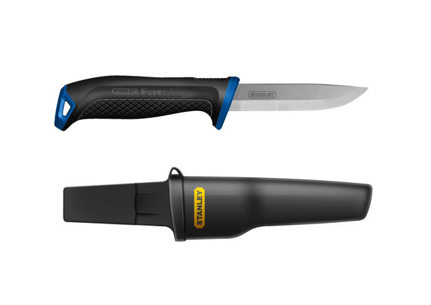 "FatMax All purpose Knife - stainless steel blade. Knivbladet er herdet til 60 HRC - for økt holdbarhet og levetid. Slipt og håndskjerpet - for forlenget original kutteskarphet. Design med mykt grep for komfortabel forlenget hard bruk. Hylster med belteklips for praktisk transport av kniven. Et bedre valg for bruk i nærheten av vann, spesielt saltvann. 1,5 mm blad i rustfritt stål. Bladlengde 3-5/8"". "