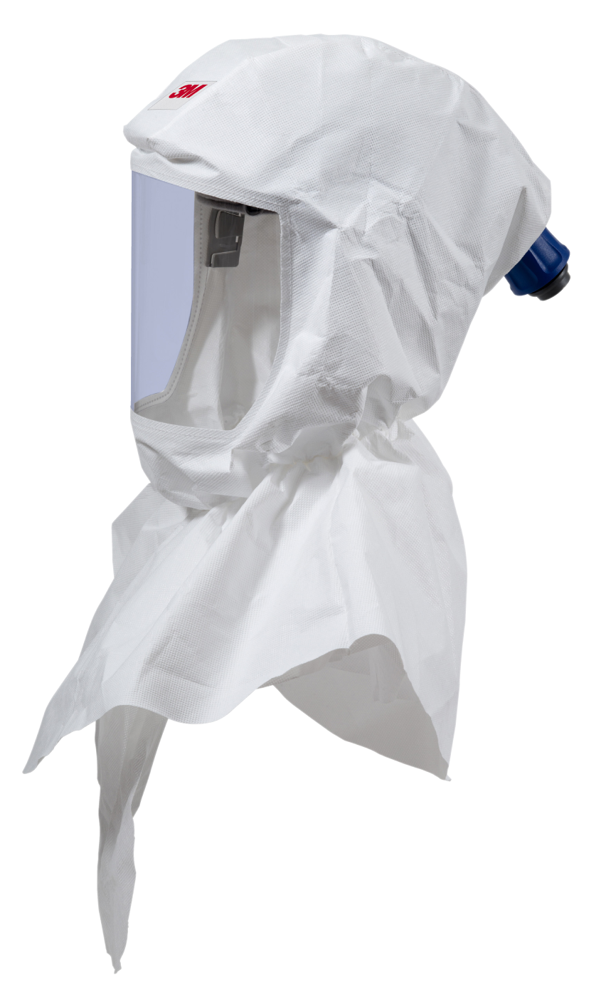 Hette for sprøytemaling med komfort hodebånd. Laminert polypropylen. Dekker hode, ansikt, nakke og skuldre. Gir øye- og ansiktsbeskyttelse mot væskesprut og partikler med lav anslagsenergi. Acetatvisir og et spesialmateriale for sprøytemaling. Hetten har også et indre laminat som hindrer maling i å trenge igjennom.Samsvarer med EN 12941 TH3 med Jupiter og Versaflo vifte.?Samsvarer med EN 14594 3A med Versaflo trykkluftsregulator.?