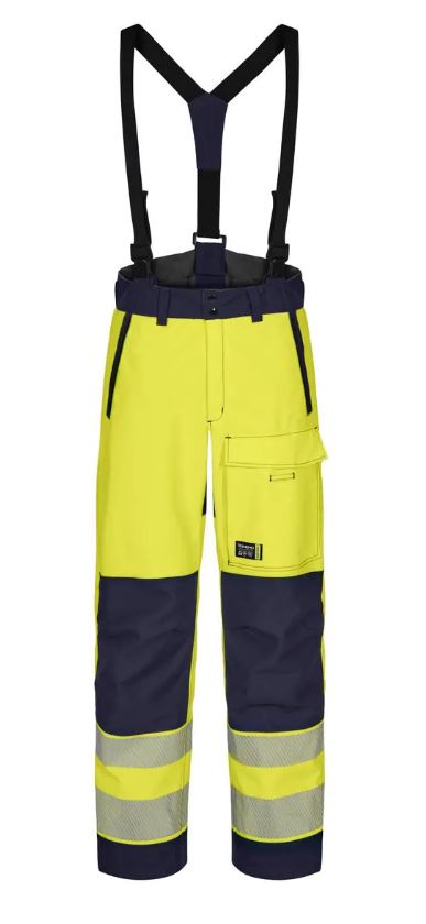 PFAS-fri skallbukse i synbarhet med teipede sømmer, meshfôr og avtakbare seler. Vind- og vanntett i henhold til EN 343.