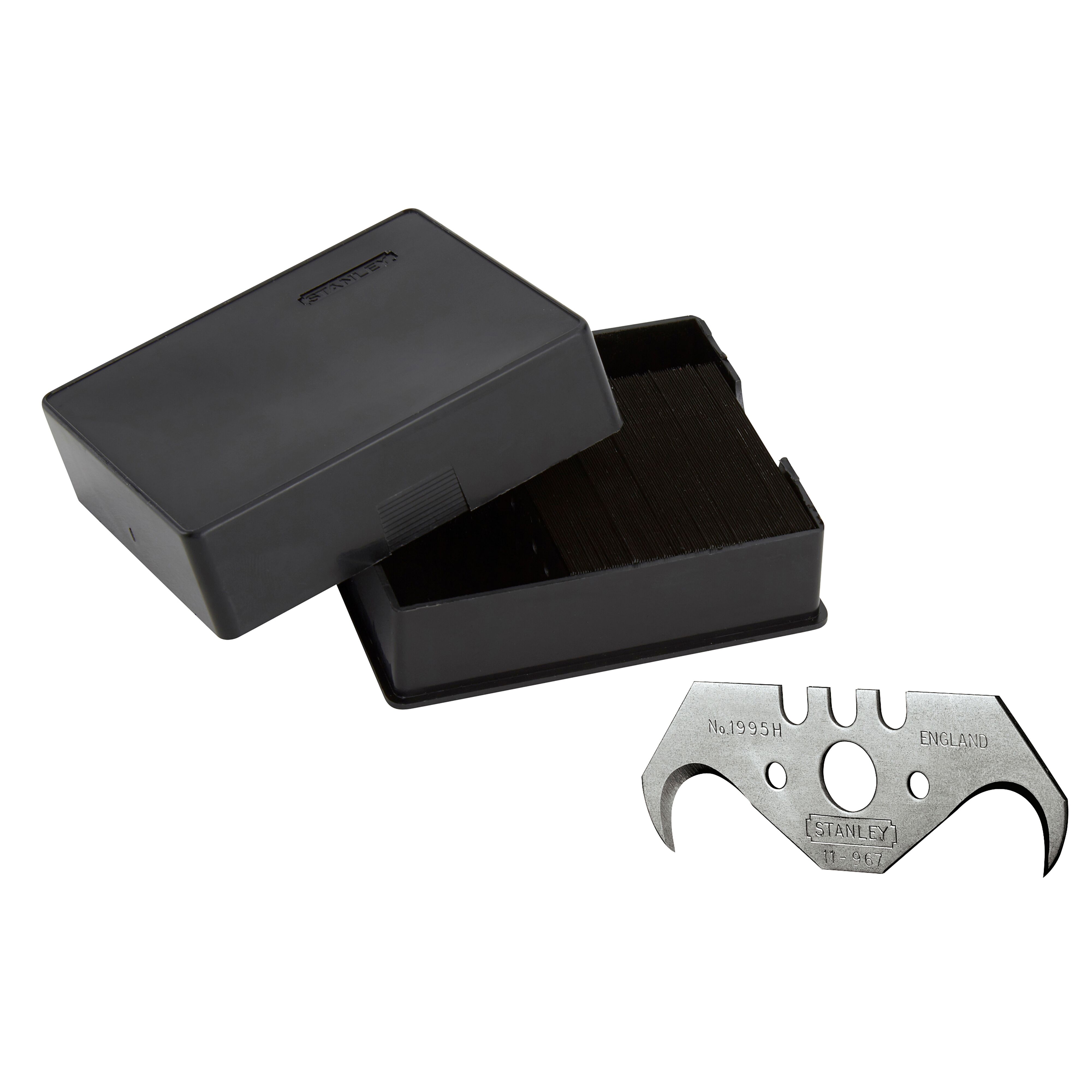 "Knivblad med stort hull i midten for teppenivellering. Vendbar stort blad med to kroker som er Ideelt for tykke tepper "