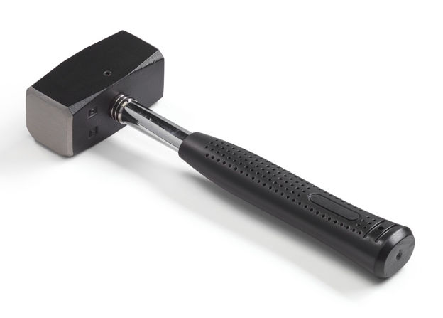 Svartlakkert meiselhammer med herdede og planslipte slagflater på begge sidene.