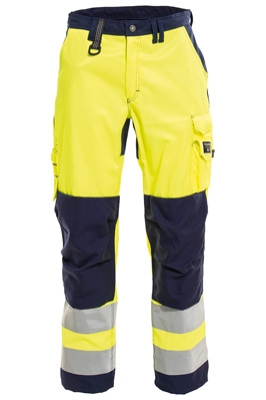 Bukse i synbarhet med romslig passform og oppgradert med smalere ben. Kneputelommer i HTPA. 3-nålssøm. D-ring. Romslige stikklommer. Baklommer. Lårlomme med ekstra lomme, mobillomme og verktøyfester. Hammerholder. Tommestokklomme med pennelommer. Formsydde kne. Kneputelommer justerbare i to høyder forsterket med HTPA. Forsterkning nederst på ben med HTPA. C44-64, C146-156, D84-120 92 gul/grå, 93 oransje/marine, 94 gul/marine, 97 rød/grå