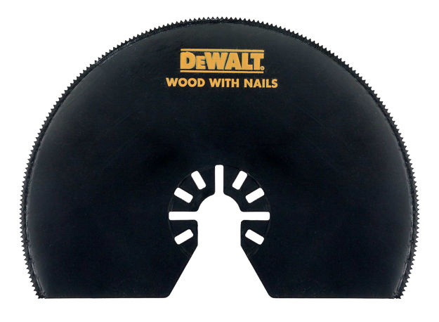 Multikutterblad segment for saging i tre og tre med spiker, samt andre myke materialer. Multitilpasset tilbehør. Hurtig og enkel montering. 22TPI halvrundt segment sagblad 100mm.