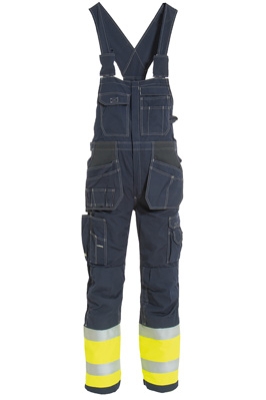 Glidelås på framsiden. Justerbare seler med skjult fixlock spenner. Brystlommer, den ene med klaff. Skjult D-ring. Doble HTFR-Dobby forsterkede hengelommer. Sidelommer. Formsydde kneputelommer. Doble lårlommer med telefon og tommestokklomme. Baklommer. Justerbar i livet. Plagg med kortere benlengde og plagg med lengre benlengde - produseres ved ordre. Omtrent 5 ekstra arbeidsdager må påregnes på levering.