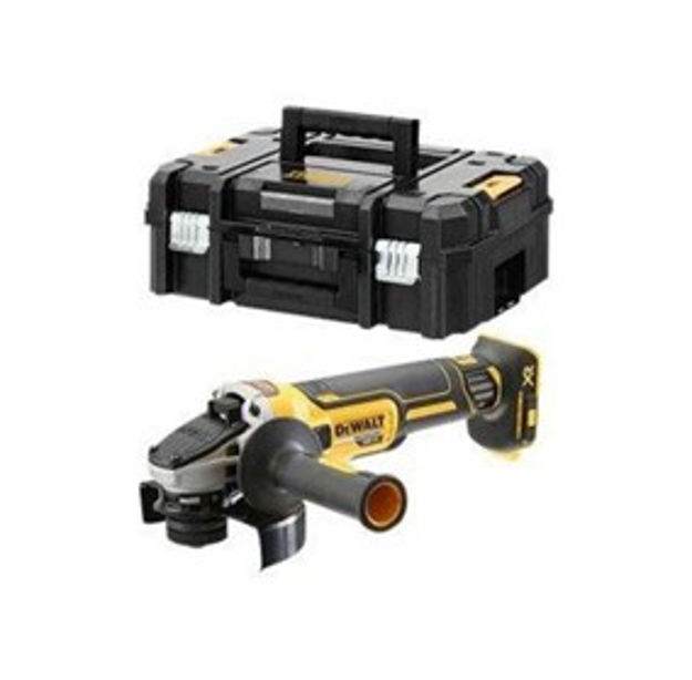 "DEWALTs kraftfulle, førsteklasses XR Li-Ion vinkelsliper, som er en effektiv oppladbar-løsning for kutte - og slipeoppgaver i metall og murverk. Det flate hodet gir god tilgjengelighet på trange steder. Børsteløs motor med forbedret ytelse ved krevende oppgaver. En elektronisk brems stanser skiven raskt når bryter er frigjort/utkoblet. Vinkelsliperen har også en elektronisk clutch som reduserer kick-back ved f.eks. fastkiling. Nettdekselet forhindrer at støv suges inn i motoren. Håndtaket er gummibelagt for bedre grep og brukerkomfort. To-posisjoners side-håndtak for bedre kontroll. Et 18V XR Li-Ion-batteri sikrer maksimal kraft og ytelse. Produktet leveres uten batteri og lader i TSTAK med standard tilbehør: Sidehåndtak, nøkkelfritt deksel, skivenøkkel. "